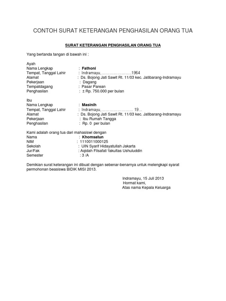 Biasanya, surat ini dikeluarkan oleh pihak perusahaan khususnya yang sehubungan dengan bagian keuangan atau personalia. Sedikit berbeda dengan surat penghasilan karyawan, kamu yang mempunyai usaha sendiri alias wiraswasta membutuhkan tanda tangan dari pengurus rw . Surat pernyataan penghasilan orang tua. Contoh surat pernyataan penghasilan usaha sendiri picture placed ang submitted by admin that preserved inside our collection. Surat pernyataan penghasilan orang tua.